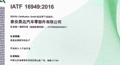 泰安昊達汽車零部件有限公司位于新泰市經(jīng)濟開發(fā)區(qū)嶅山路7號,公司成立于2011年,是一家生產(chǎn)中、重型卡車底盤鑄鍛件、焊接件、發(fā)動機配件的專業(yè)廠家,廠區(qū)占地面積101畝,2018年建設(shè)年產(chǎn)300萬件汽車零部件項目,項目總投資3.16億元,總建筑面積3.6萬平方米,是新泰市汽車裝配產(chǎn)業(yè)鏈的重點項目、2018年、2019年泰安重點項目,現(xiàn)已建設(shè)完畢,于2019年1月1日正式投入使用,設(shè)備新上覆膜砂自動化鑄造生產(chǎn)線1條、熱模鍛生產(chǎn)線6條、自動化焊接生產(chǎn)線10條、CNC加工設(shè)備200余臺套。 主要產(chǎn)品:中、重卡車底盤配件、轉(zhuǎn)向配件、中后橋氣室支架總成、中后橋配件、前橋轉(zhuǎn)向節(jié)臂、焊接配件、發(fā)動機配件。產(chǎn)品主要銷往中國重汽集團、市場份額約50%,位居行業(yè)鑄件產(chǎn)品前三。 公司擁有IATF16949:2016國際標(biāo)準(zhǔn)質(zhì)量管理體系認證,擁有實 ......